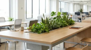 オフィスにグリーンを取り入れるアレンジが難しい企業は、家具一体型プランターもおすすめです。テーブルやカウンターの一部がくり抜かれており、プランターが設置できる仕様になっています。